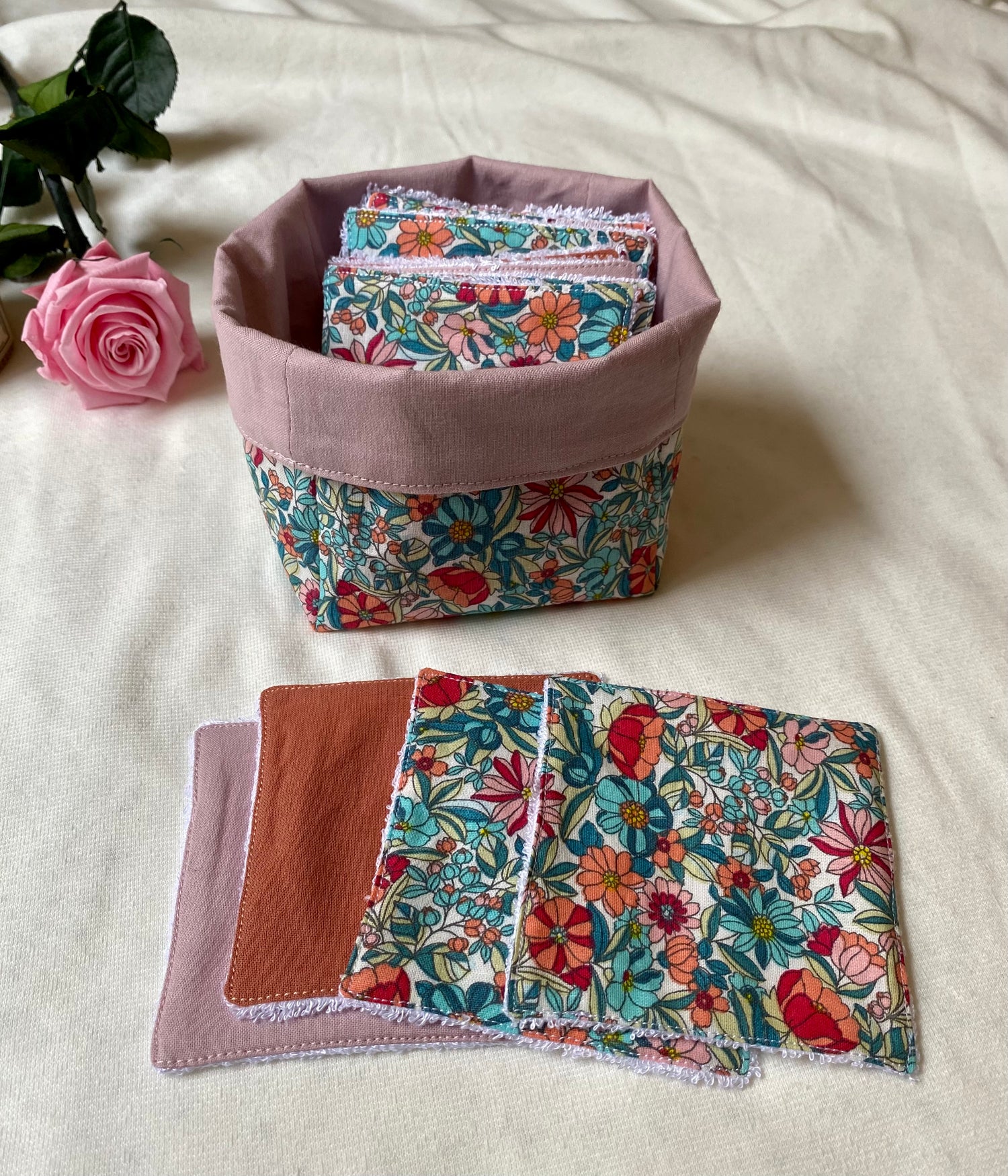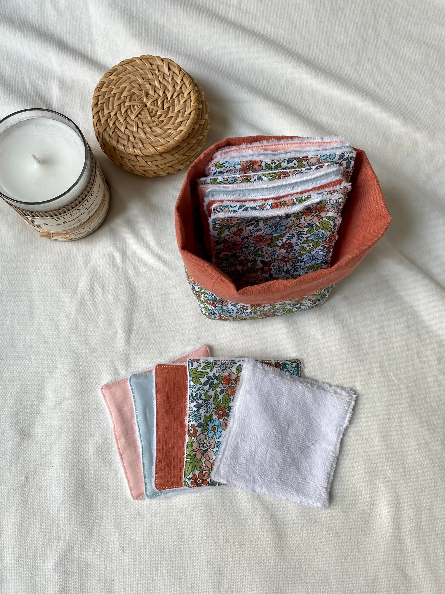 Lot de cotons lavables et son panier de rangement